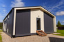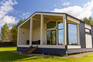 Благоустроенный участок (посеян газон, гравийные парковка и отмостка).