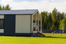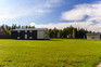 Благоустроенный участок (посеян газон, гравийные парковка и отмостка).